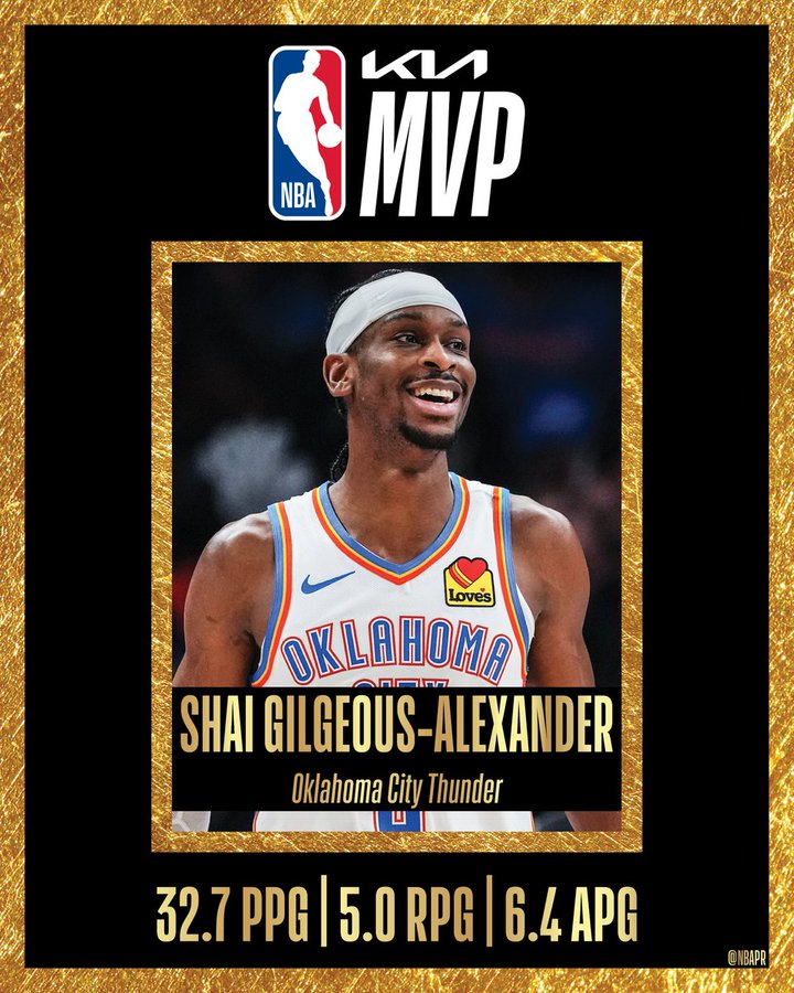 05月22日讯 NBA官方宣布,雷霆球星亚历山大荣获本赛季MVP!