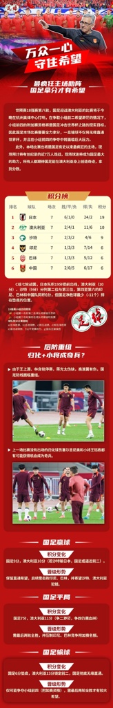 3月25日讯 今晚19点,18强赛第8轮,国足在杭州主场对阵澳大利亚队,《足球》报作图解读国足形势。