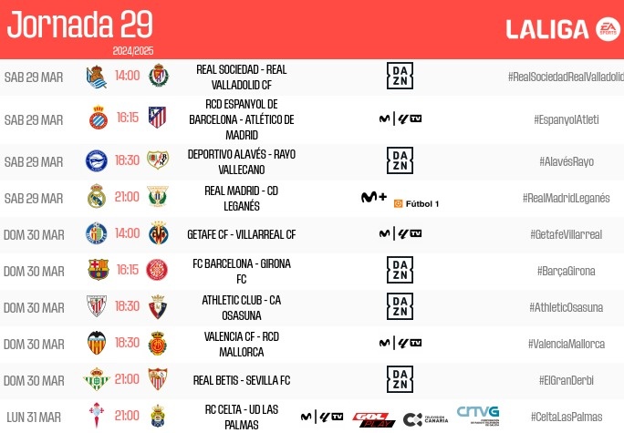 3月21日讯 由于巴萨和奥萨苏纳的补赛时间确定,西甲官方调整了联赛第29轮毕尔巴鄂和奥萨苏纳的开球比赛,这场比赛将于北京时间31日00:30举行。