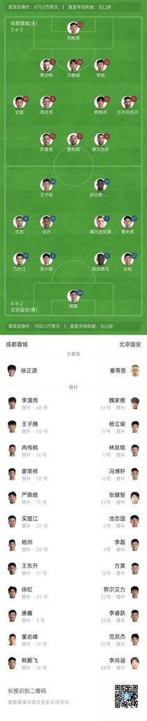 蓉城vs国安首发:4外援PK!德尔加多先发,王子铭、塞鸟出战